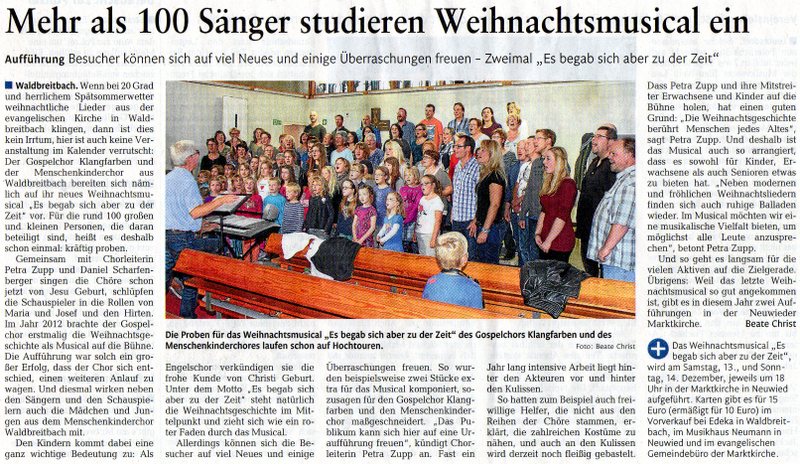 RZ – Bericht zum Weihnachtsmusical Veröffentlicht am 15. Oktober 2014 von Petra Zupp — Keine Kommentare ↓